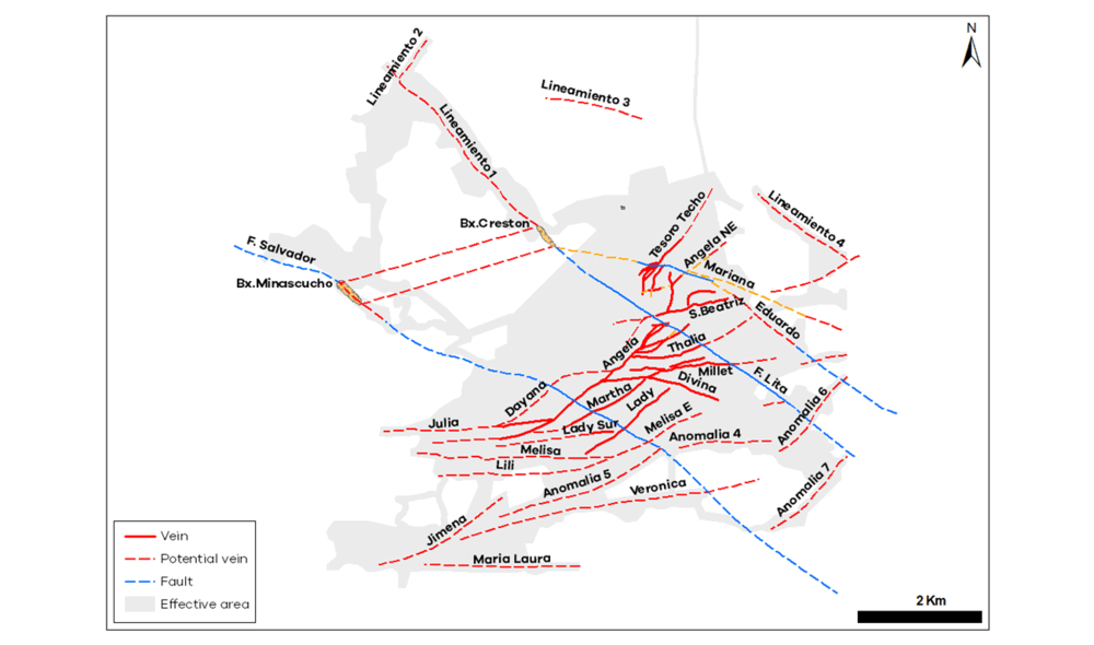 La propiedad, puesta en servicio en 2015, consta de cuarenta concesiones mineras y se caracteriza por sistemas mineralizados epitermales de baja y alta sulfuración, alojados en vetas, brechas y diseminaciones dentro de volcánicos terciarios. Hemos encontrado otros 3.4 millones de onzas equivalentes de oro desde el inicio de las operaciones y sigue habiendo un fuerte potencial geológico.